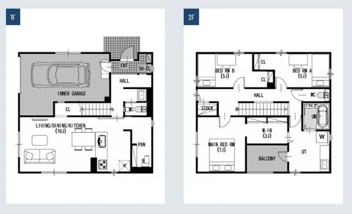 家事動線の良い間取りとしては、具体的にはこんなプランがあります。