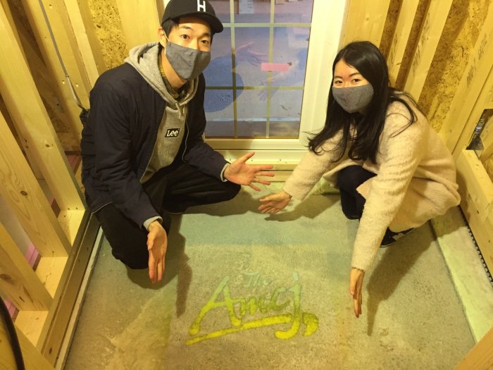 アメカジでは、建物の工事が進んでいって中間立ち合いと呼ばれる立ち合い時に基礎のコンクリートにアメカジロゴをスプレーで刻んでもらう
