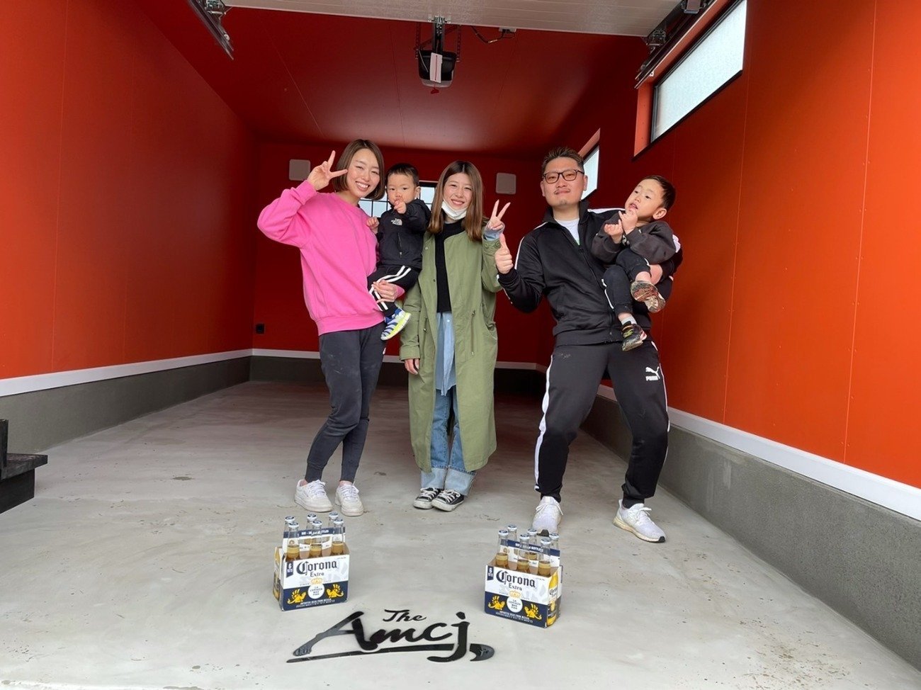 最初は照れていたお子様も、最後の方には走り回っていて、ガレージ土間に刻んだ「AMCJ」の文字を踏みそうになったりと、賑やかなお引渡しでした!