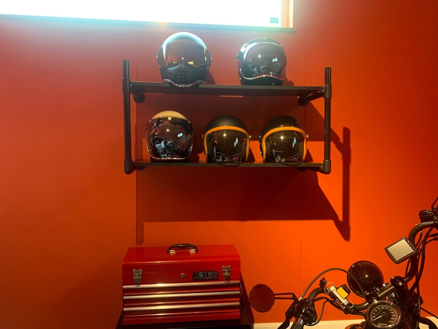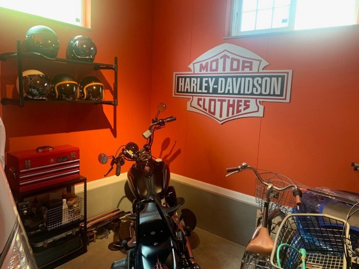 バイクやヘルメットなどの収納や飾り付けも、なんとご自身で…