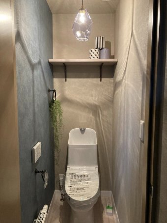 トイレもこだわっていて、収納棚も飾り棚のようなデザインにしたり、