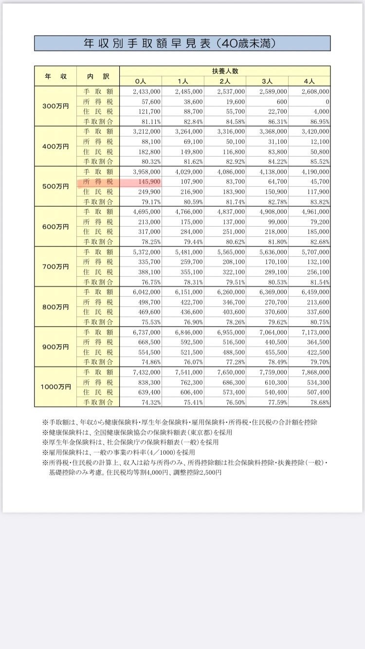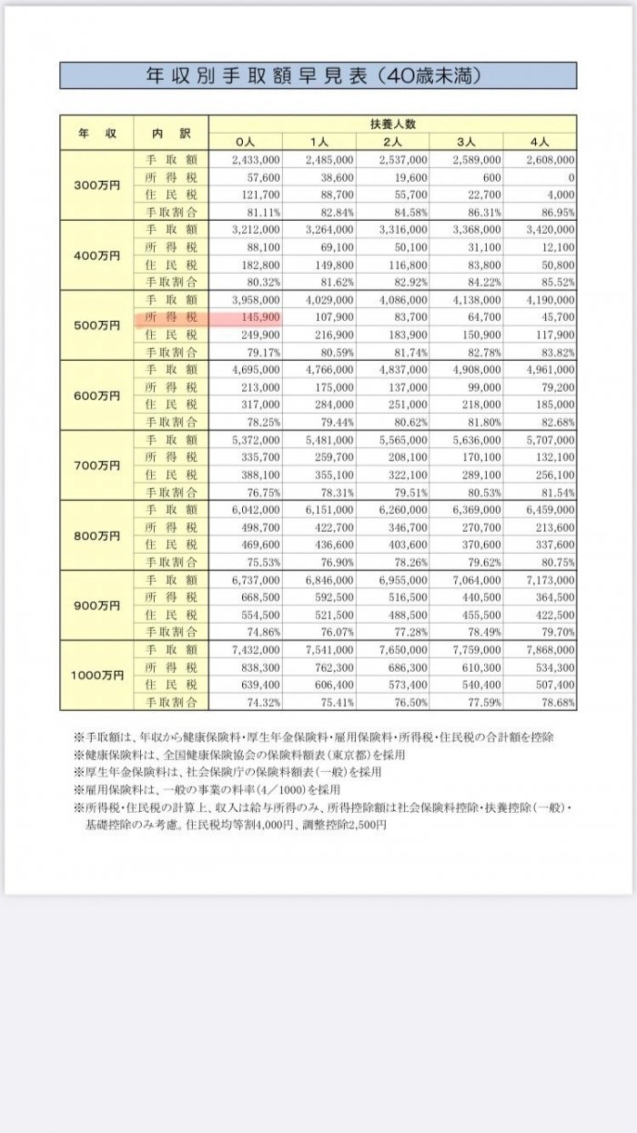 たとえば、主債務者の収入が500万円、扶養人数が0人だとすると、