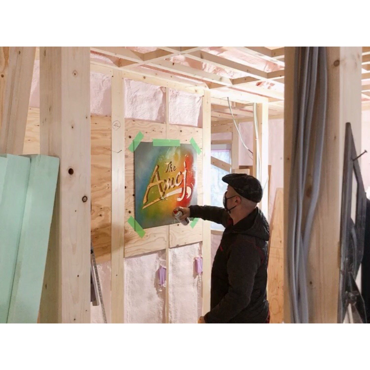 「僕もなんか書かせて下さーい」って感じでアメカジのロゴとオーナー様の名前を書いてました笑