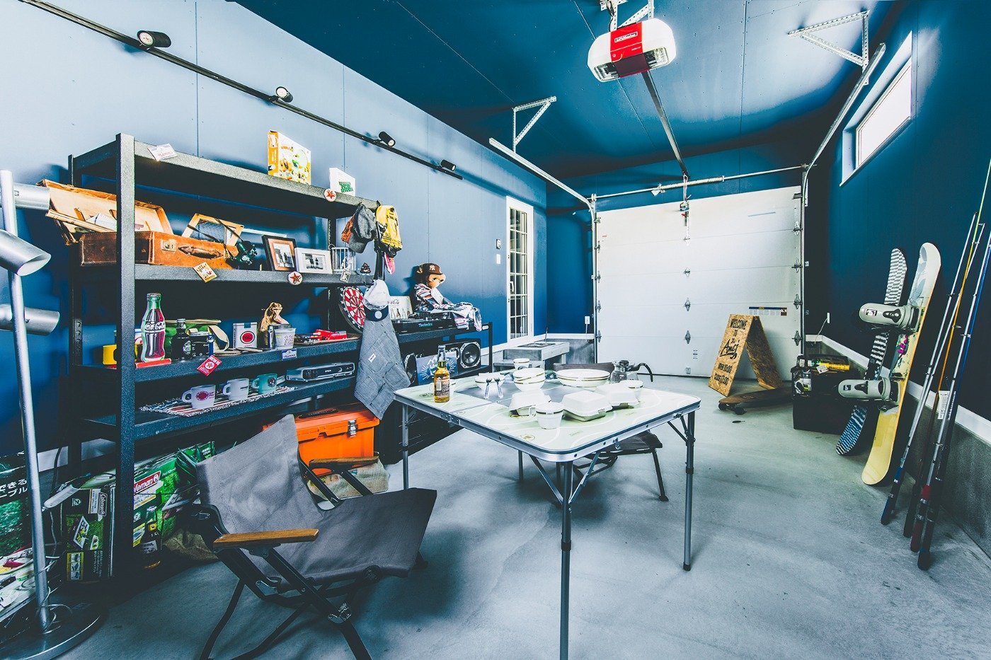 - FJクルーザーを入れれるガレージは、ヴィンテージ感のあるブルーグレー。