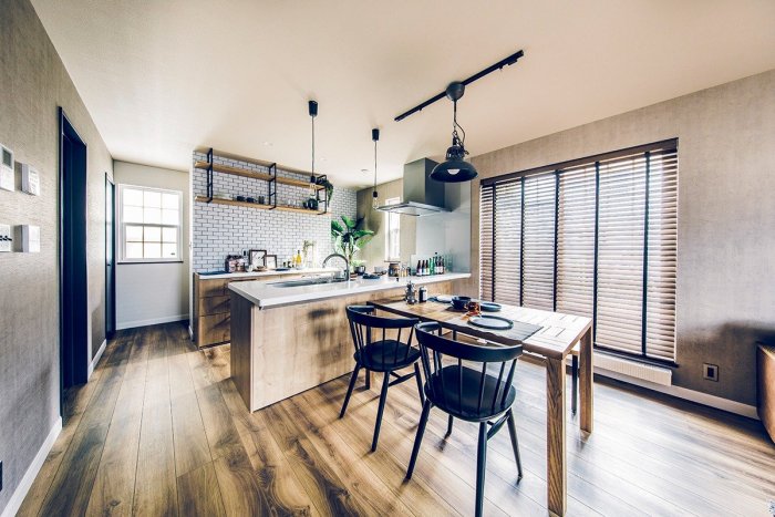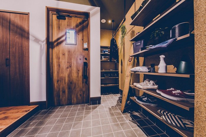 - 有孔ボードなどを用いて、魅せる収納を随所に散りばめて。