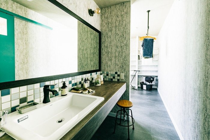 - 4色のタイルを使って、洗面をヴィンテージナチュラルに。