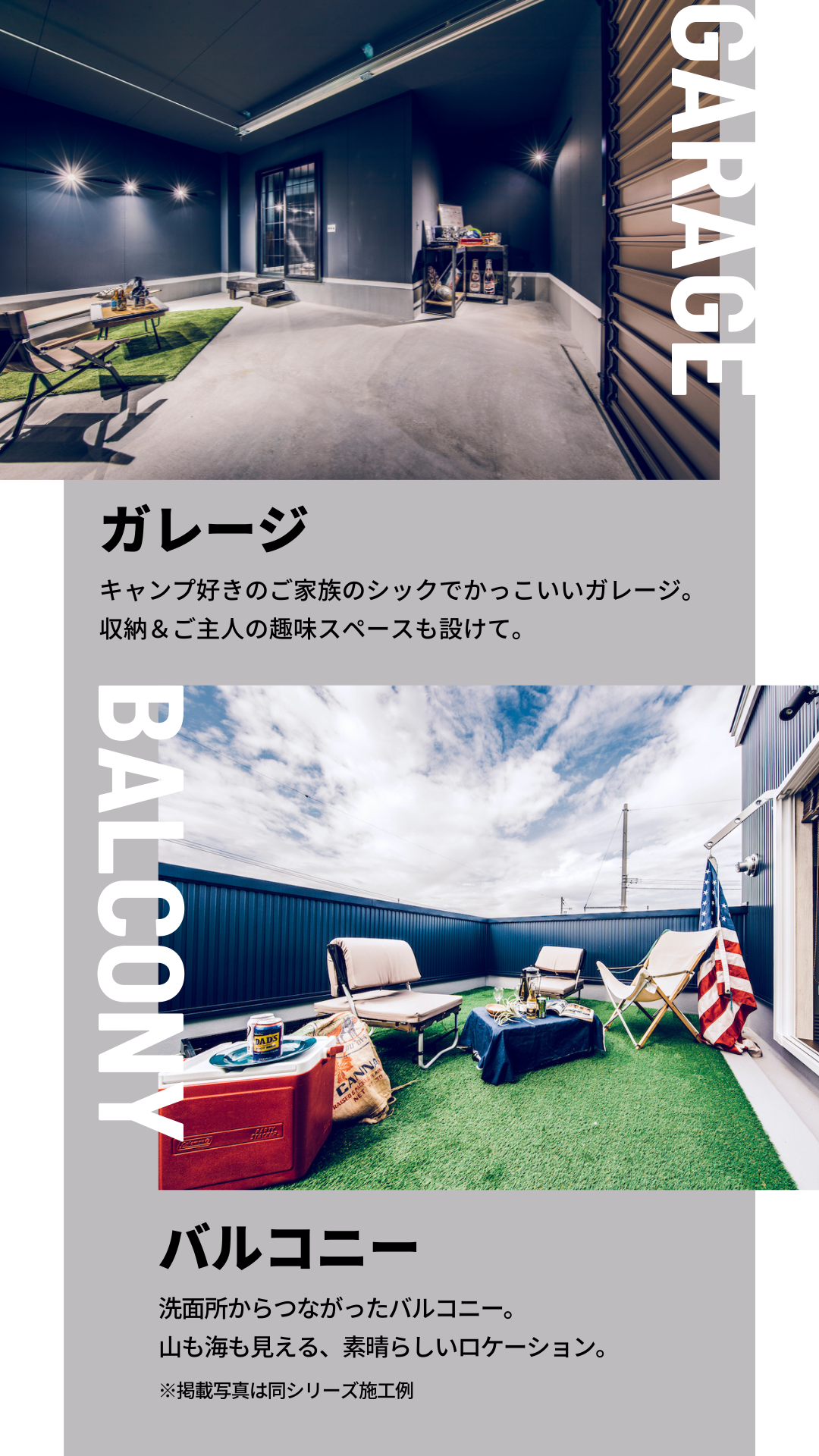 - アパートがなくなるので、マンションに高い家賃を払うくらいなら戸建建てれるかも!と思いモデルハウス へ。ガレージ付きでも金額が明確で、バルコニーができるのが魅力的!アメカジ工務店の中でも、シンプルでかっこいいお家が自分たち好みだったので、お願いすることにしました。お風呂上がりにバルコニーでビールを飲みながら眺める景色が楽しみです!