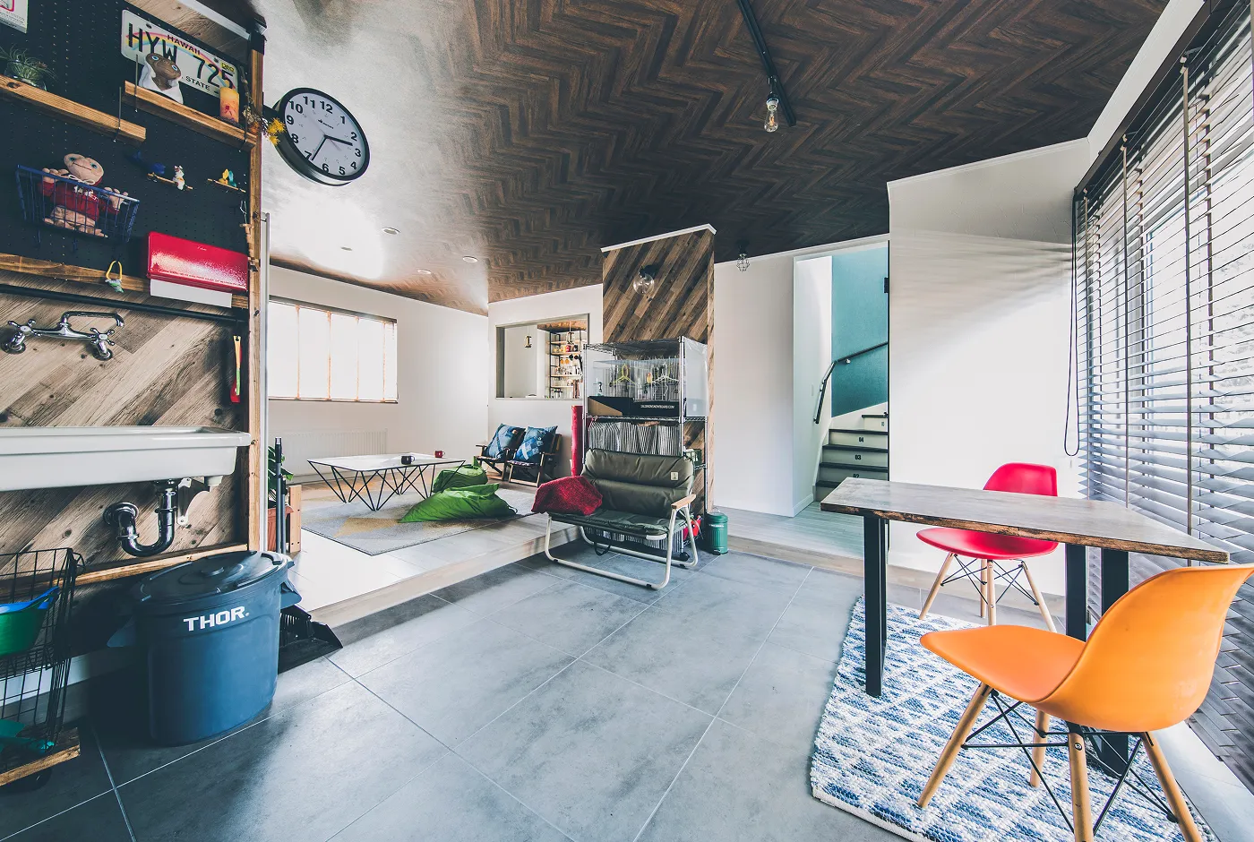 大きな土間は遊びのスペース以外にも、