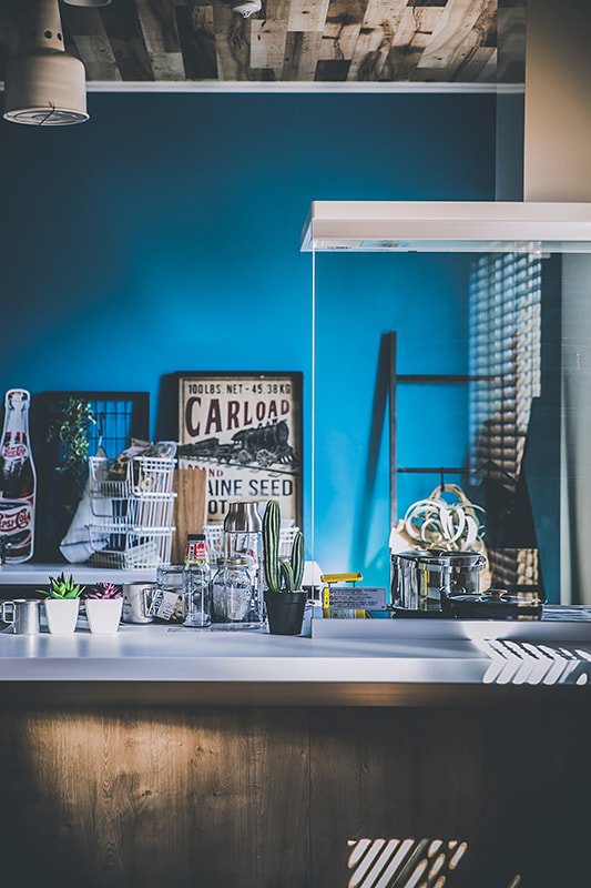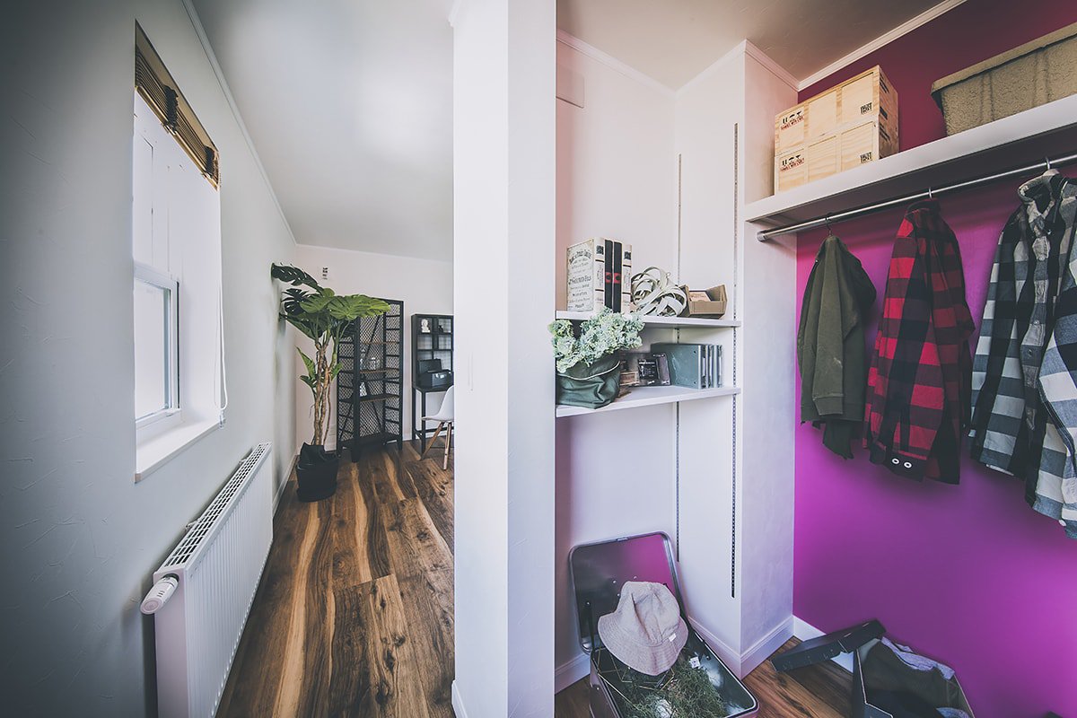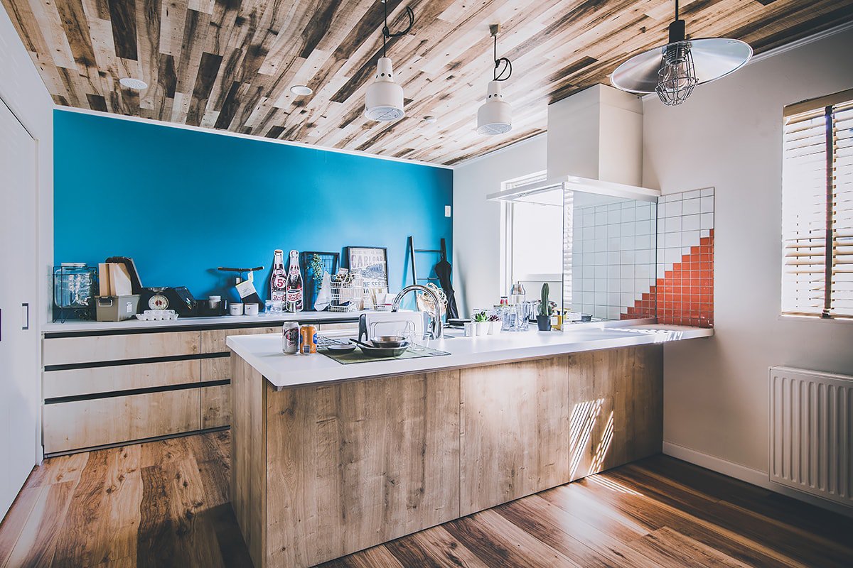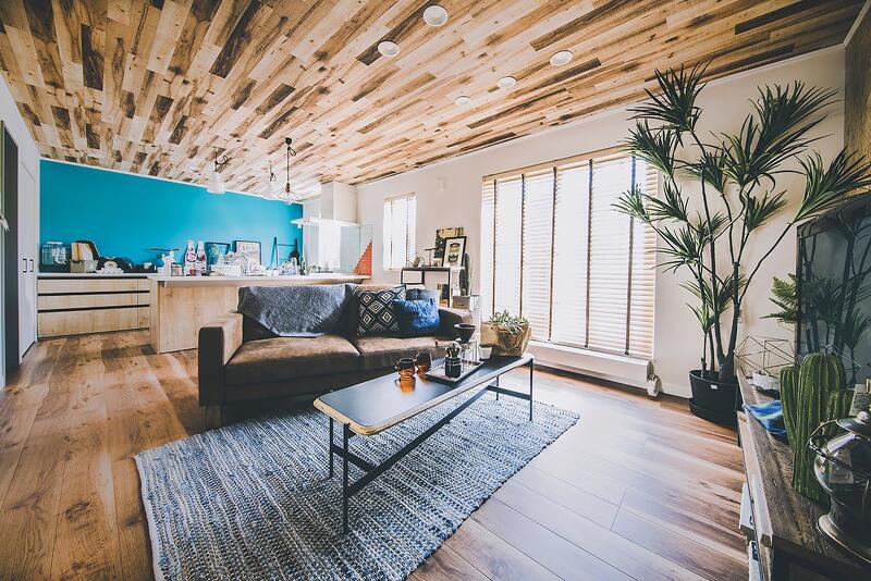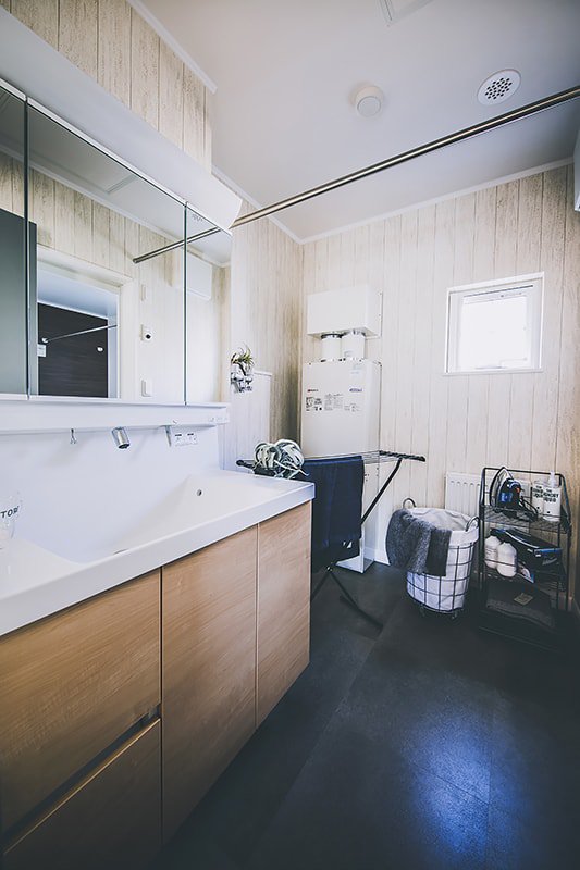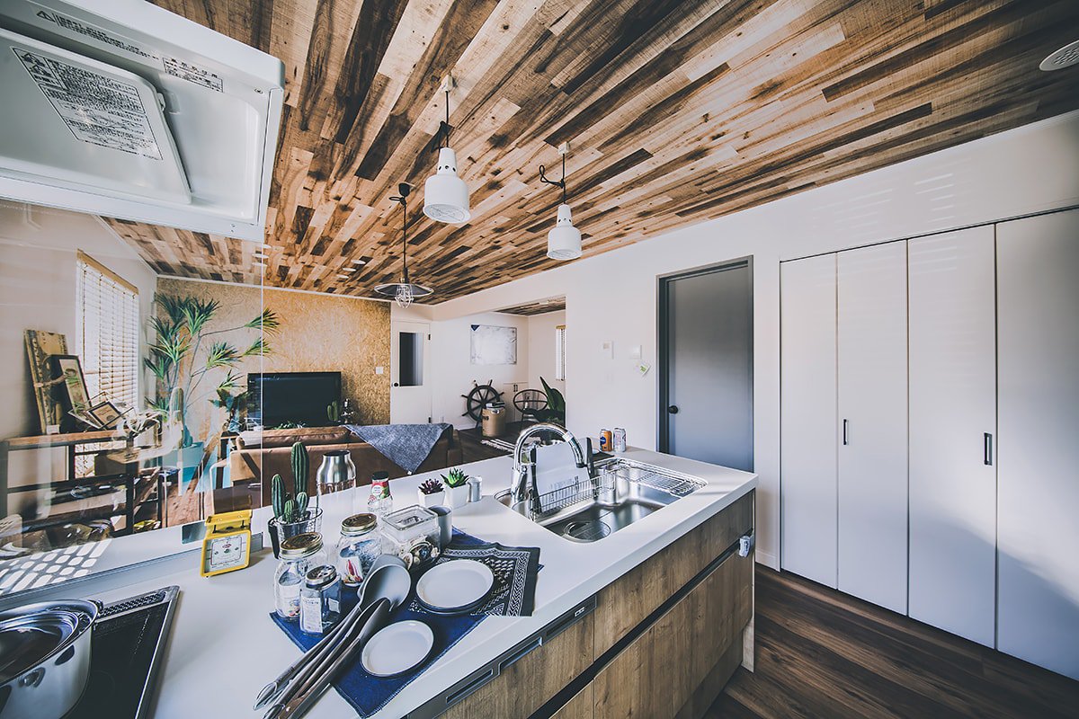 家族で過ごす、開放感を重視したリビング。仲間との遊び場にもなるガレージは、好きなモノを詰め込み、自由にアップグレードする楽しみも。玄関土間の収納スペースには、スノーボードや自転車など趣味アイテムをディスプレイ感覚で。