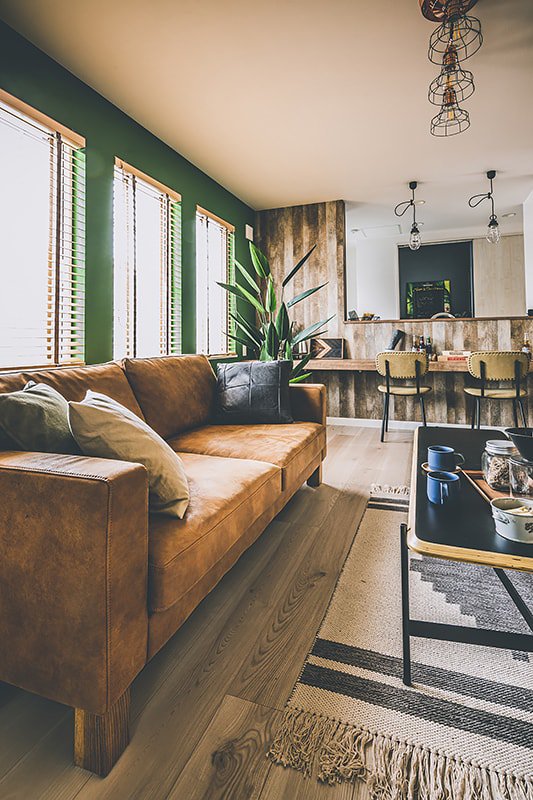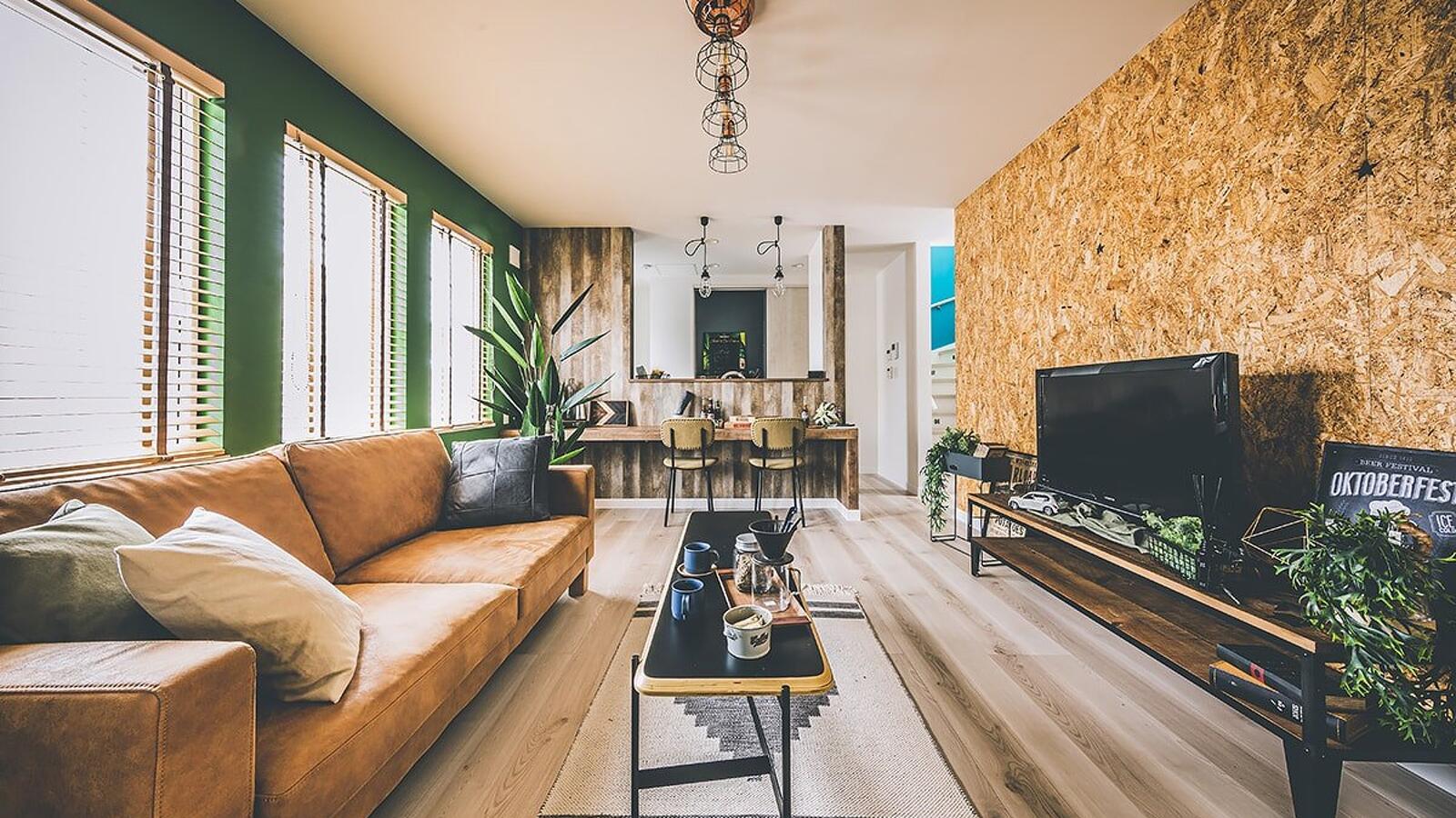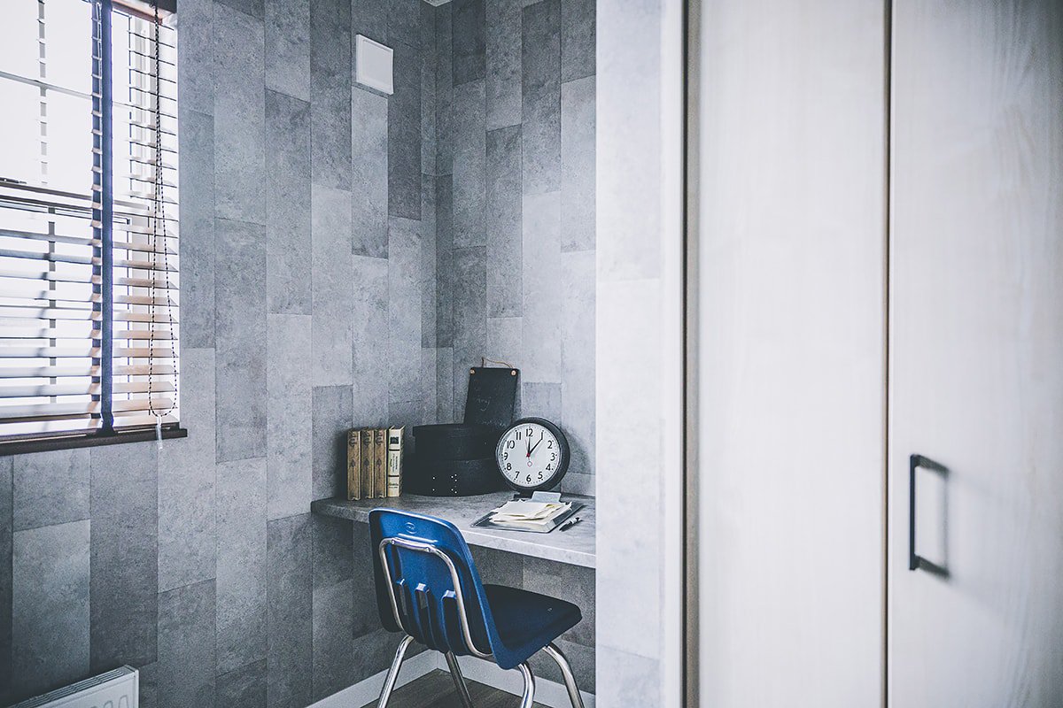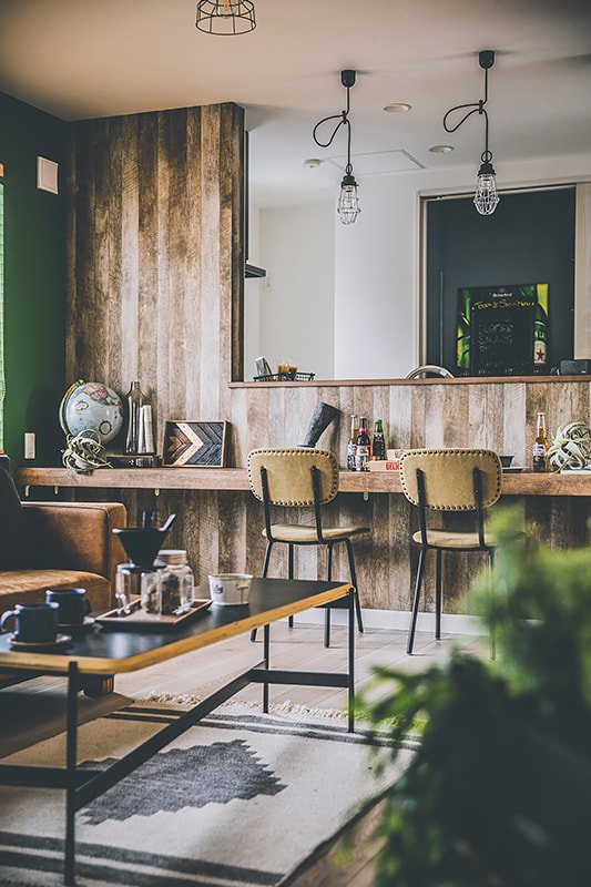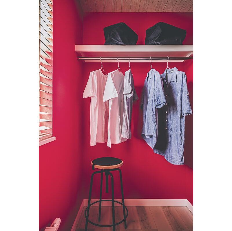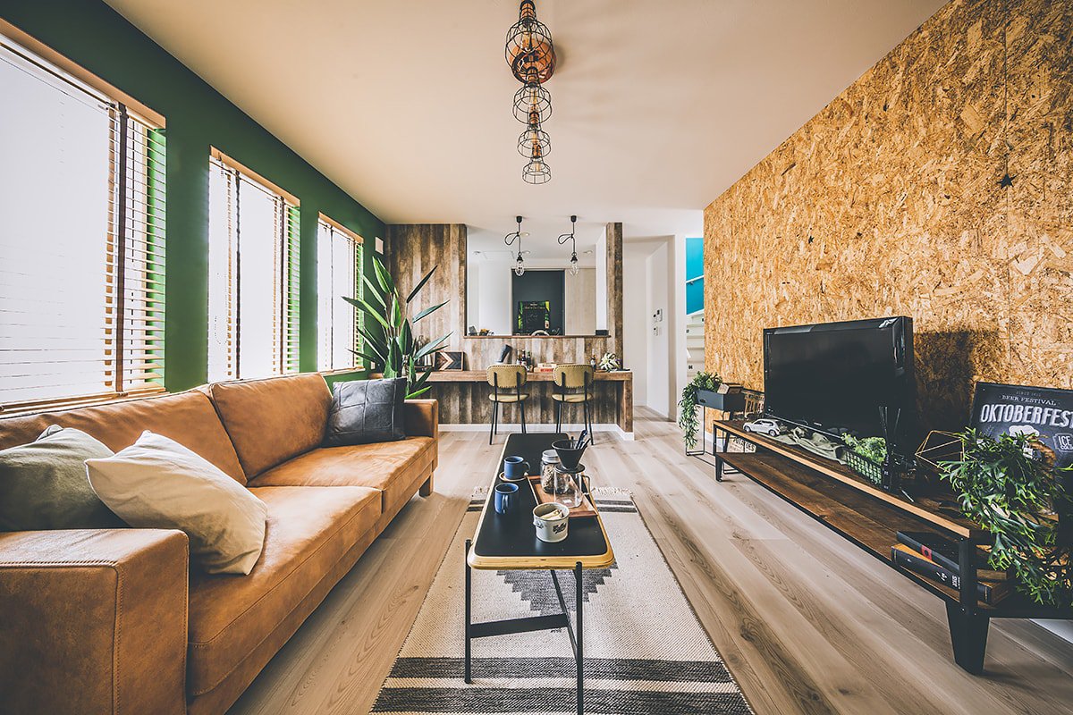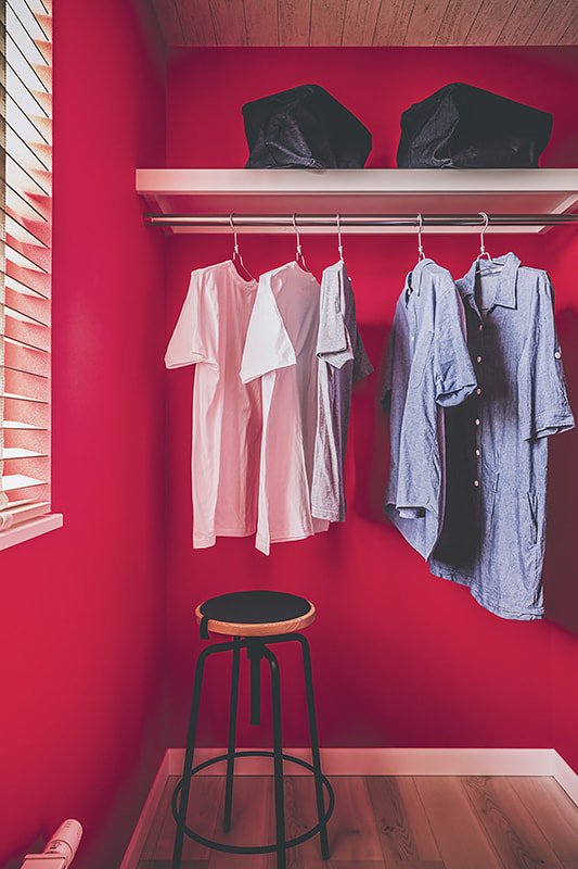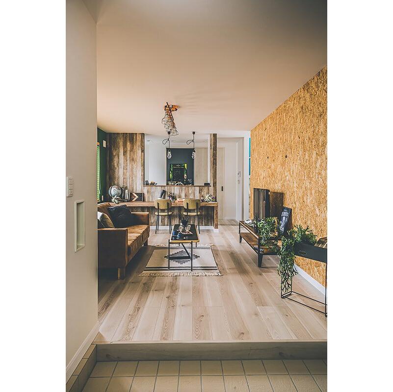 ブルーやグリーン、ピンクなど原色のクロスを使用した、カラフルで唯一無二な空間。趣味を思いきり楽しめる玄関土間。ゆったりサイズのシューズクローゼットも。