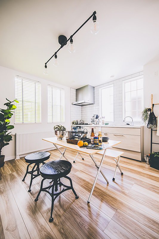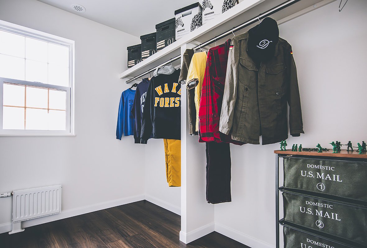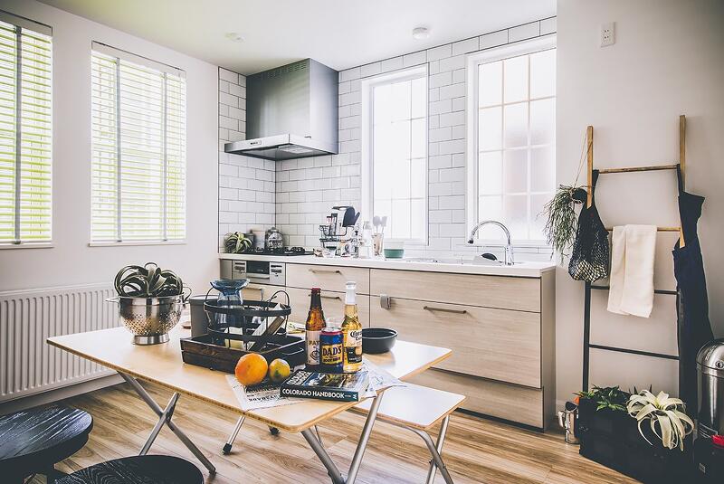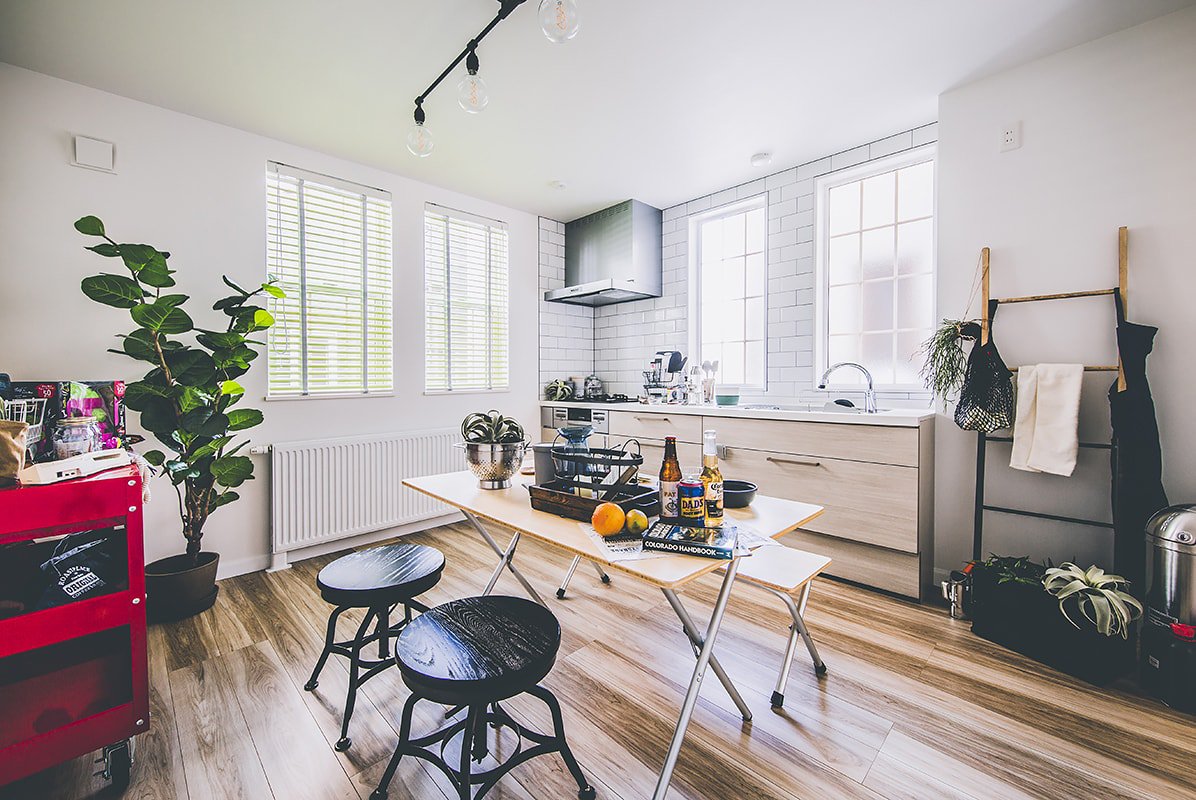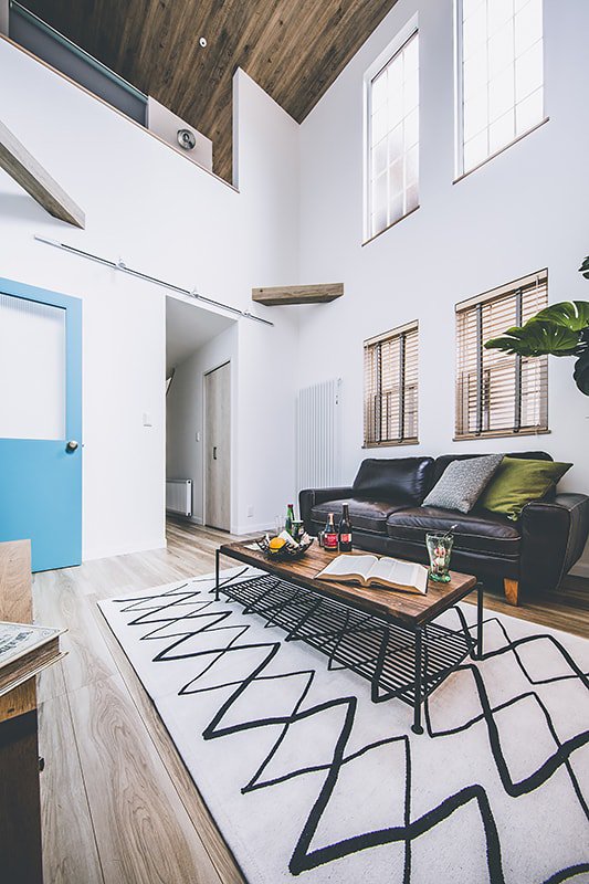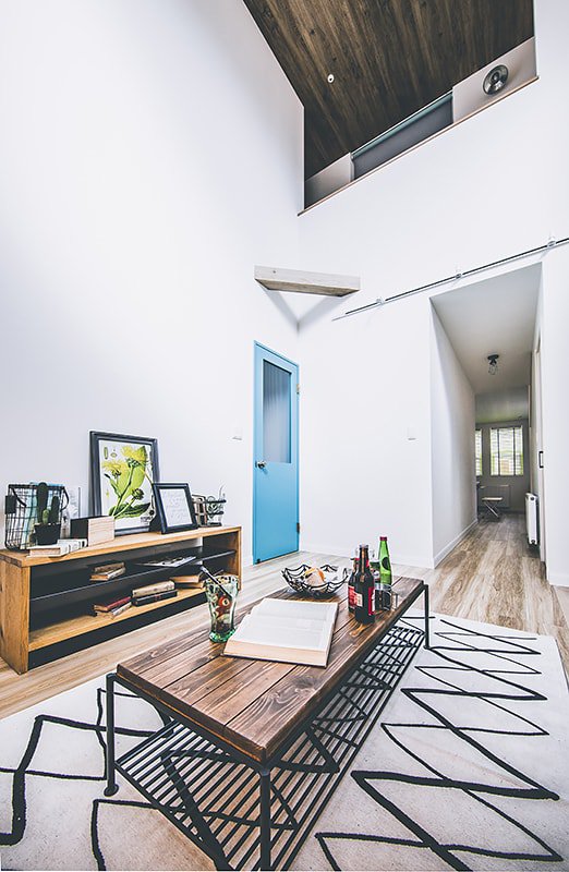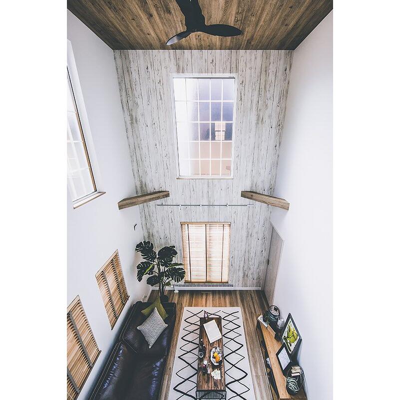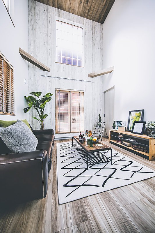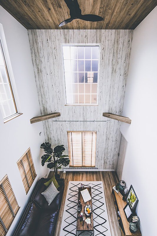 採光にこだわった、開放感たっぷりの吹き抜けリビング。居心地の良いゾーンを作るために別々にした、リビング・ダイニング。大容量のウォークインクロゼットとガレージで、部屋はすっきり過ごしやすく。