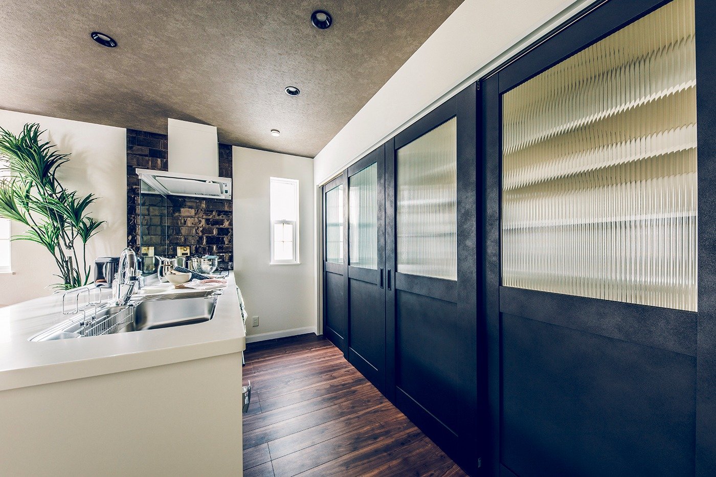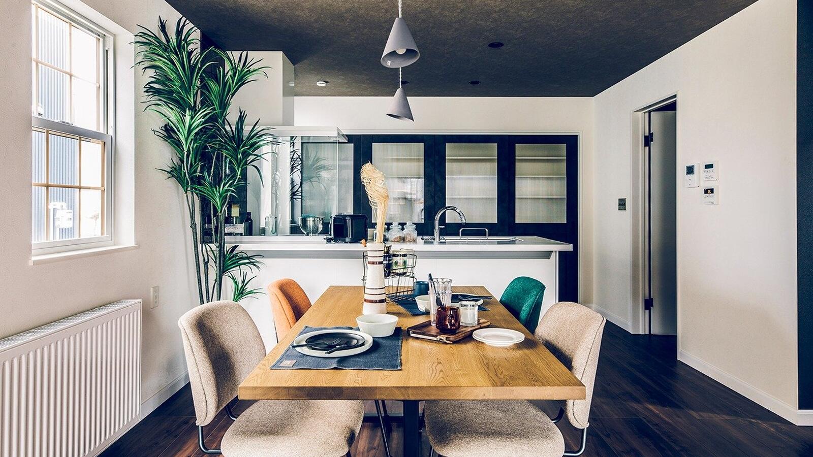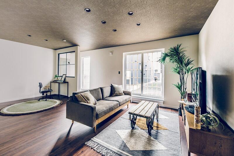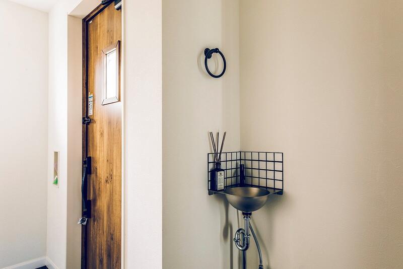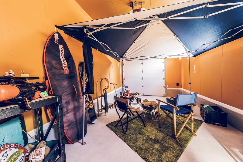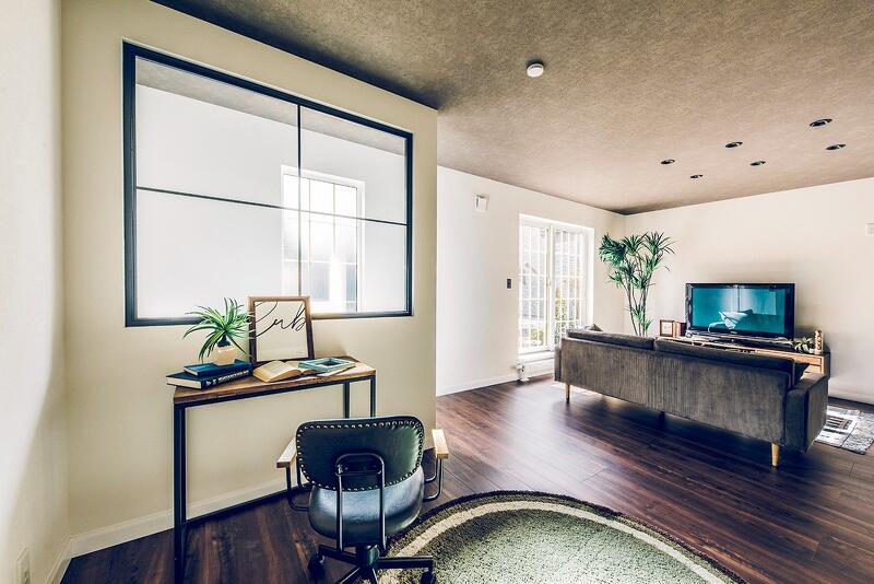 趣味の拠点や仲間との遊び場として使える、全面オレンジのガレージ。 アイアンの室内窓やキッチン背面の引き違い戸が映えるシンプルビンテージな空間。 洗濯物干しはもちろん、おうちアウトドアにも使えるバルコニー。 造作カウンターとコレクション用の棚を付けたテレワーク対応の書斎スペース。