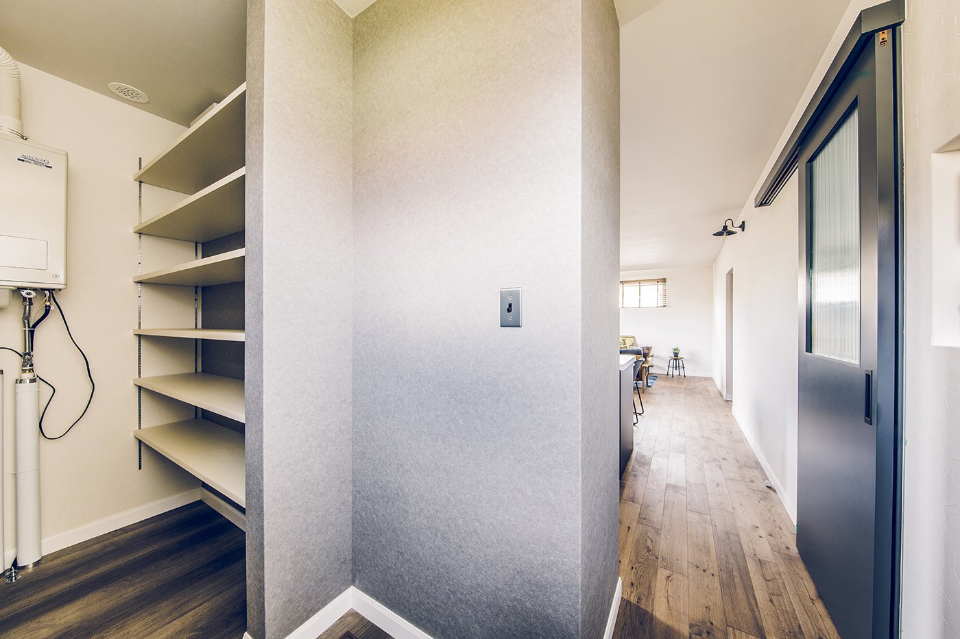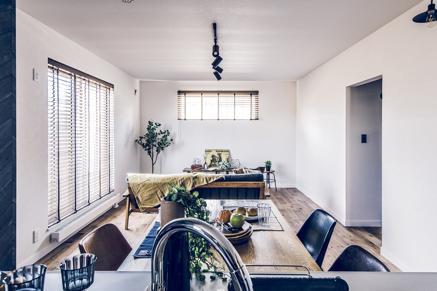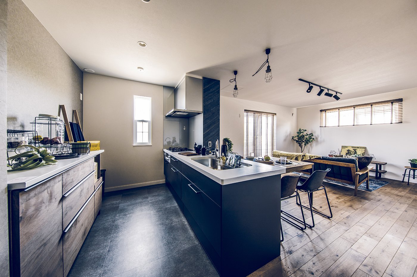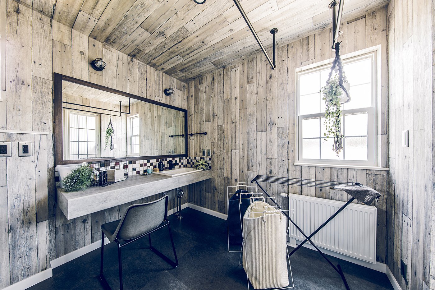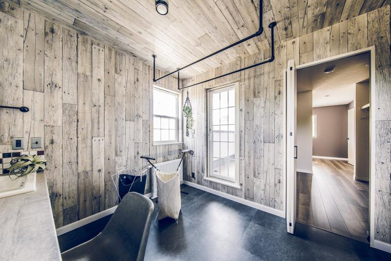 リビングからガレージを眺めることができるご主人のこだわりの窓。 洗面所から繋がるバルコニーは、お風呂上がりの外気浴も楽しめます。 キッチン収納や効率的な家事動線など、奥様の注目ポイントも満載。 無垢の床材や木目クロスなど、木のぬくもりたっぷりのコーディネート。 愛車を入れるのはもちろん、ソファを置いて趣味部屋としても使えるガレージ。
