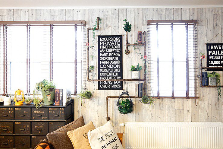 僕自身、モノを作ったりすることはなかったんですが、買ってきた水道管を錆びた感じに塗装してリビングの壁に取り付けてみたり。ココでお酒を飲むのがいい時間なんですよ。もちろん、ガレージも気に入っています。今はクルマをいじることはあまりしていないんですが、いつでもこもれる準備はできています。