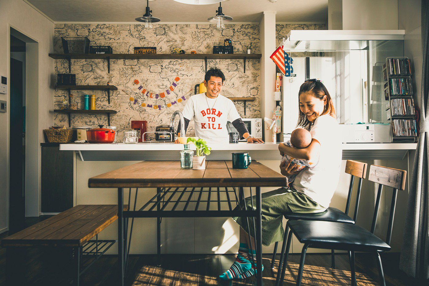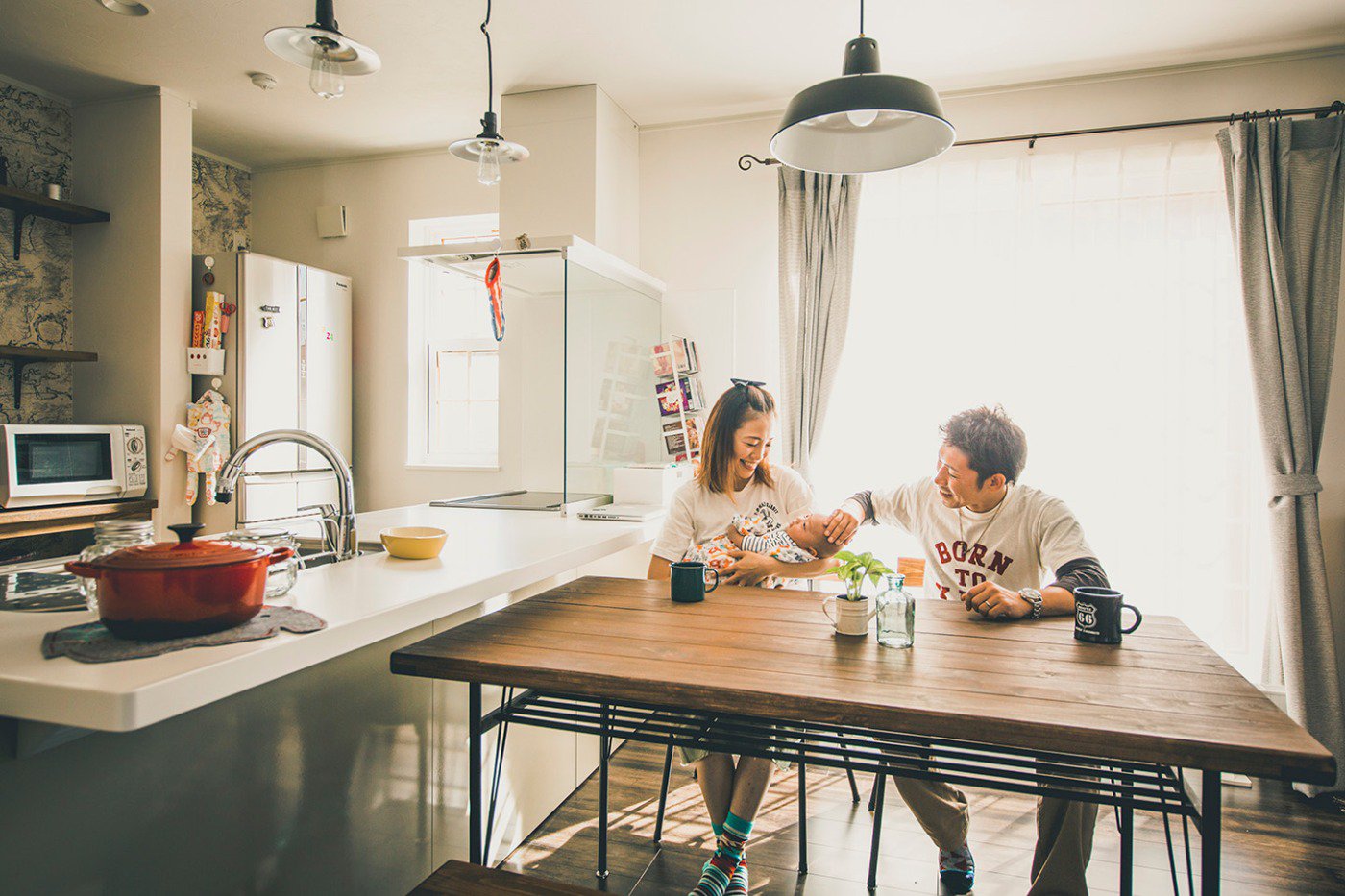 家づくりを楽しみながら、おしゃれで使い心地のいい素敵な家が出来上がりました。なかでも、妻のお気に入りはキッチンです。以前のキッチンは狭くて、作業台がすぐ食材や鍋、食器でいっぱいに。そのたびに片づけて、作業して…の繰り返し。今のキッチンはとても広いので、食材を並べたままでも大丈夫。作業スピードも速くなり、毎日の料理が楽しくなったと喜んでいます。7月に息子が生まれたばかりで、これから育児も大変になってくると思うので、少しでも妻の負担が軽くなって、安心しています。