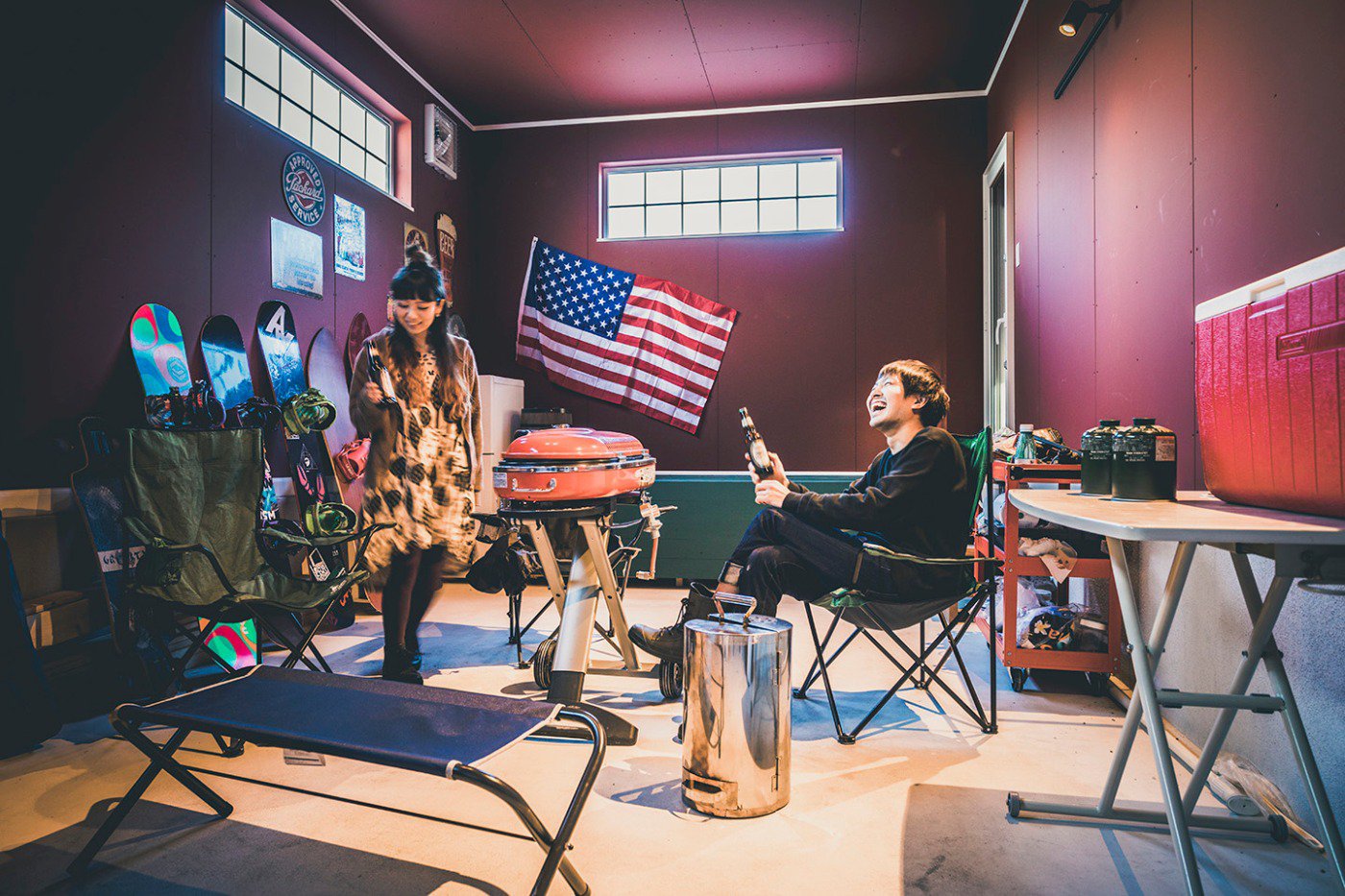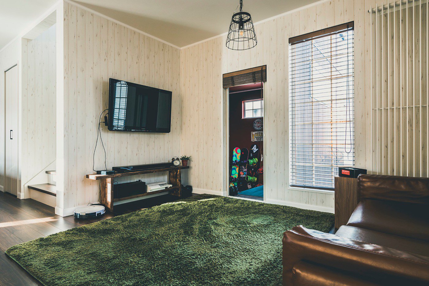 夫婦でスノーボードをやるので、山の近くに住みたい!と。ここなら、雪が降ったらすぐに滑りにいけるので嬉しいですね。友人が遊びにくることが多いので、リビングダイニングは広めにして、キッチンもカウンターで開放的に。車のためではなく、スノーボードやスケボーを楽しむためのガレージが欲しかったんです。あと冬でもBBQができる場所も!西海岸風のインテリアを目指して、コーディネートを楽しみました。