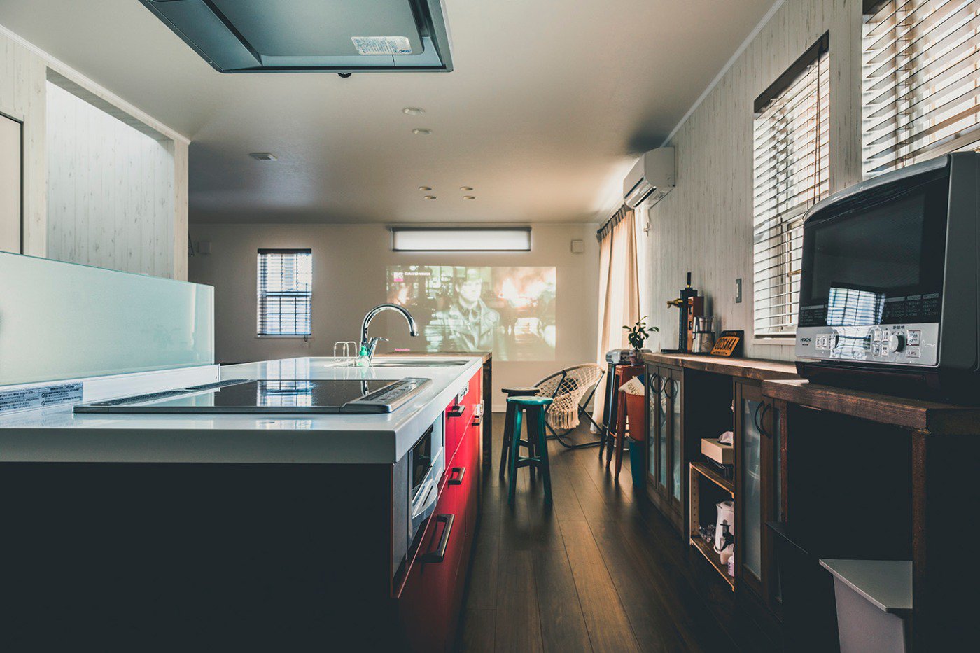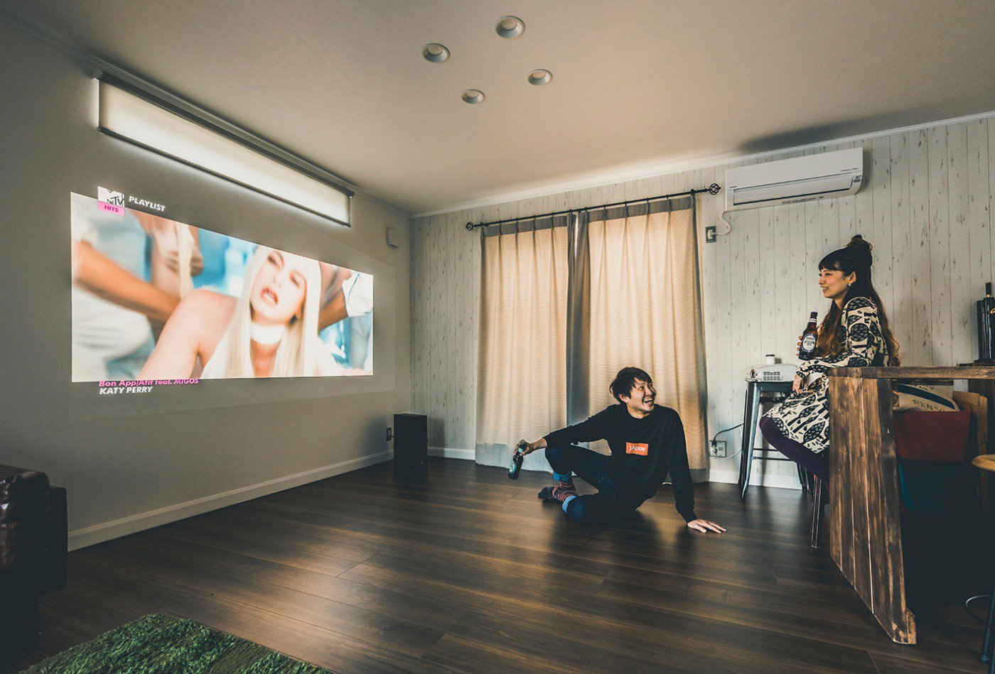 入居して、7ヶ月経ちますが、よく友達が泊まりに来て騒いでいますね。平日は、夫婦ふたりで、プロジェクターで音楽を楽しみながら、ゆったりお酒を飲んでいます。