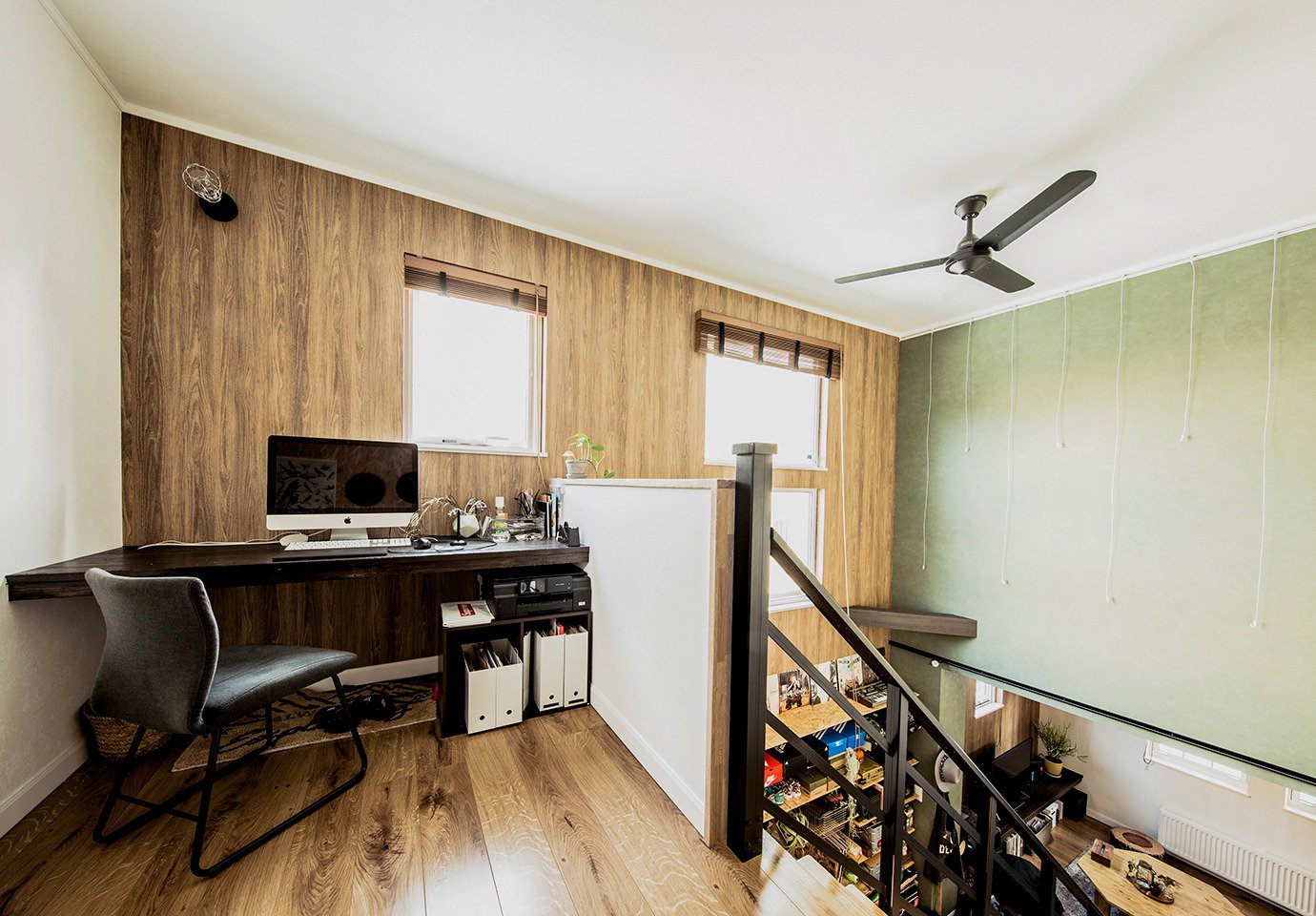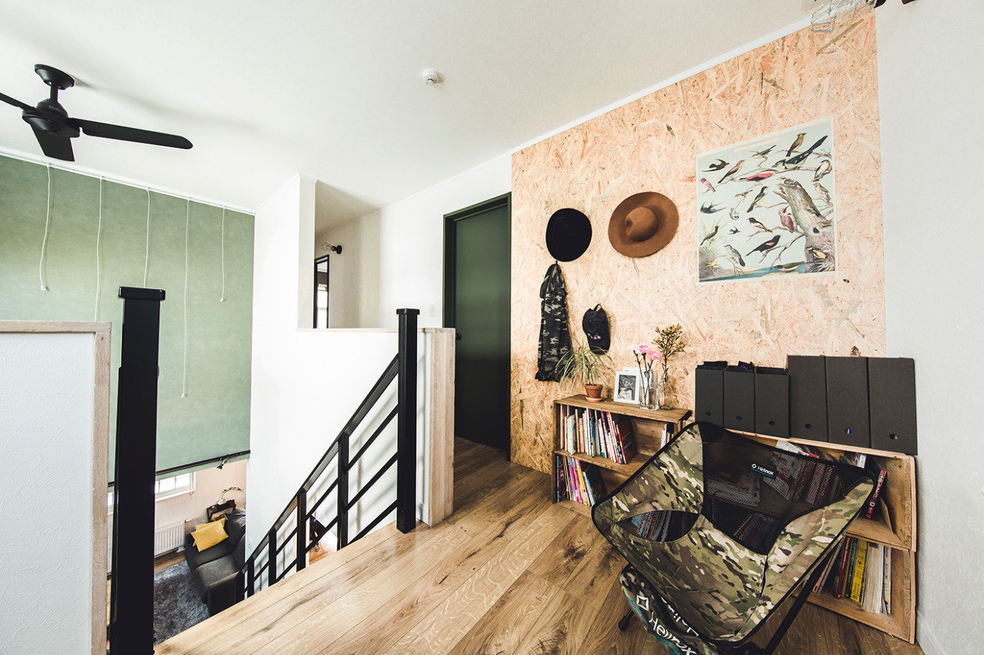 妻は2階のフリースペースで、イラストの仕事をしています。吹き抜けだから、子供の声がどこでも聞こえて、安心して仕事ができるみたいですね。子供たちも、自分の部屋ができたので、姉妹仲良く遊んでいますよ。妻は、大好きな植物を思いっきり飾ることができて嬉しいって言ってます。今まではスペースがなくて我慢していたみたいなので…
