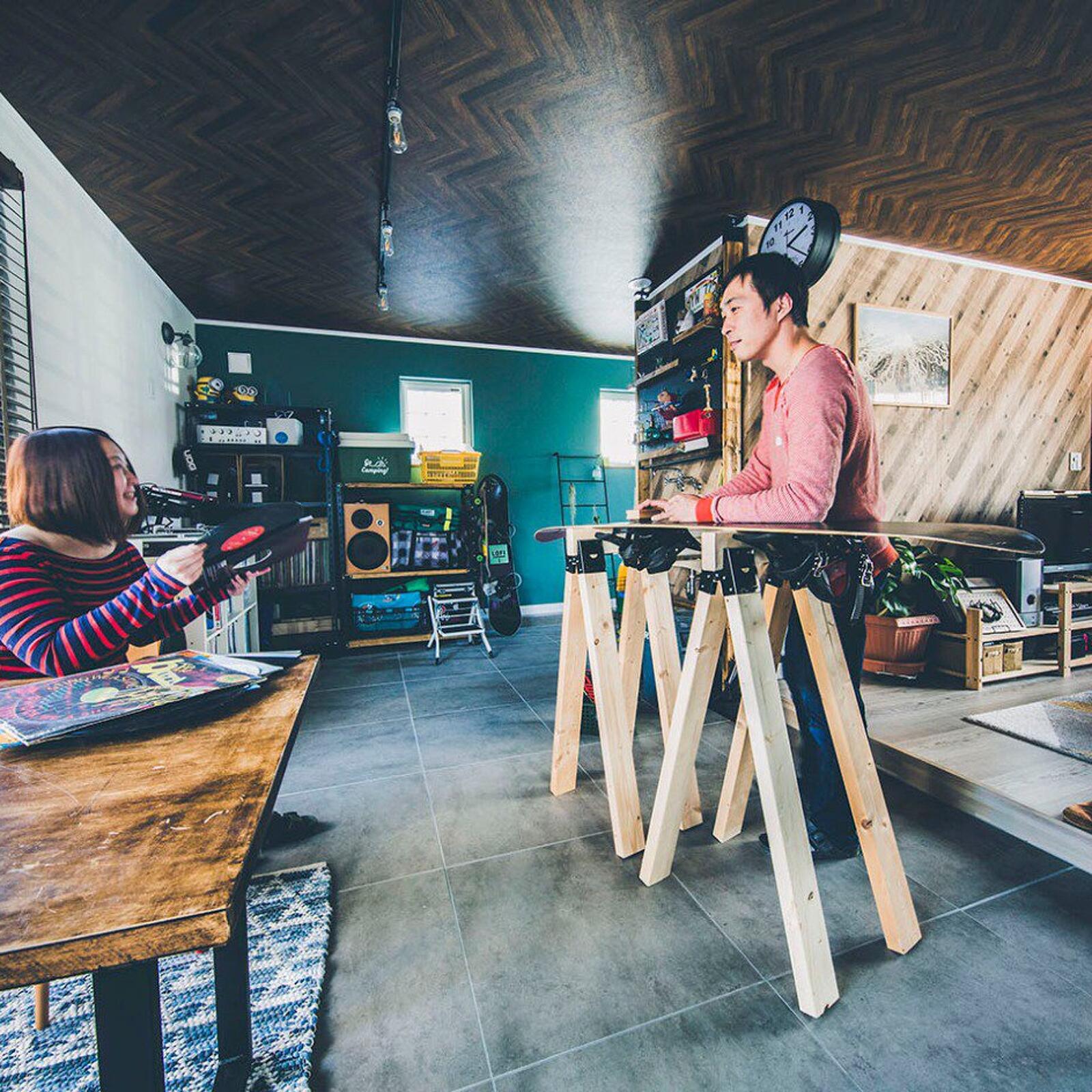 年齢的にそろそろ定住できるところをと考えていました。ふたり共通の趣味がスノーボードとキャンプ。音楽も好きです。札幌で2LDKのマンションに住んでいたんですけど、遊び道具が増えて置き場に困っていました。ボードのワックスを落とす場所もなくて。なので、妻のDJ機材も含めて、道具をひとまとめにしてかっこよくも置ける土間のある家が欲しかったんです。