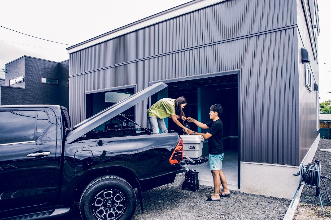 住んでから1ヶ月ちょっとですが、まだ完成形ではないので徐々にやっていきたいですね。友人が遊びにきたらみんなびっくりするんですよ。ガレージのある家ってないから、見たい!って。あと玄関入っていきなりキッチンなのも驚かれます。買い物したものをすぐにしまえるから、おすすめしています笑。週2でBBQ、暇さえあれば洗車をして、楽しみながら、少しずつ外構もしていきたいなと思っています。