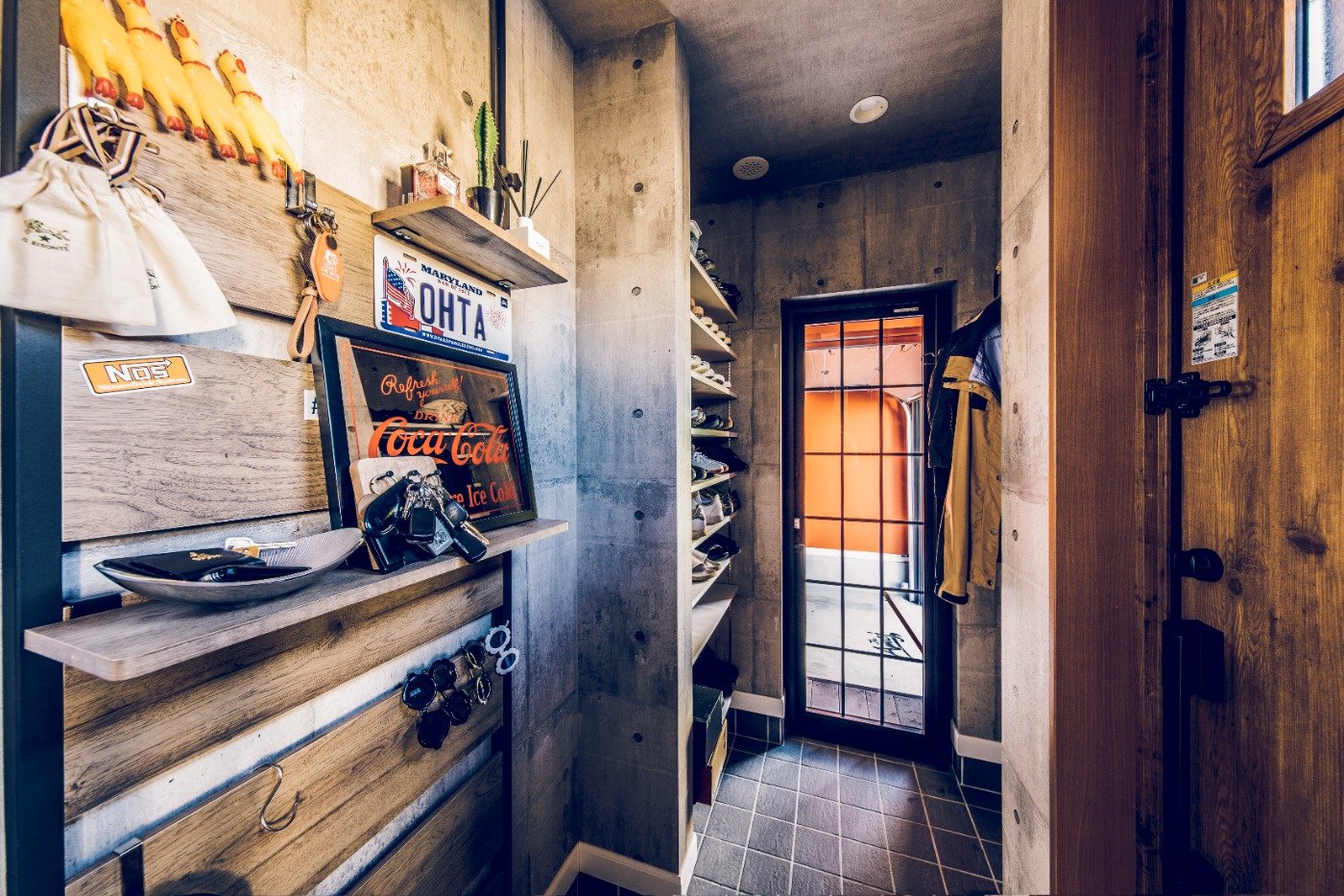 インスタでアメカジ工務店の広告を見て、自分の好みドンピシャで。「明日ちょっと行ってみる?」みたいな軽いノリでモデルハウスの見学に行きました。30歳までには家を建てたいと漠然と思ってはいたけど、アメカジの家を見てからは、家づくりが一気に進みましたね。アメカジの家は、驚くくらいに求めていたそのもの。つまらない家に住むなら賃貸のままで良いと思っていたけど、ここは普通じゃない個性が溢れ出てて。「自分たちが家を建てるならこれだ!」っていうのが頭の中にはあったので、初めて見た時からしっくり来たんですね。クロスやドアのデザイン、家具や雑貨もカッコよく飾られてて、何よりガレージが最高だなと。車が好きだから、ガレージは絶対に欲しくて。アメカジのガレージは、ただ車を入れるだけの空間じゃないのもすべて含めて、「イカすな〜」と笑。妻がアメカジの家を見学した帰りに、「私たちもアメカジの家に住むんだね」と、自然にその言葉が出てたんですよね。他の会社を全く見ずに決めたから、友だちにはビックリされたけど、それほど運命を感じる出会いだったなと。でもやっぱりいちばんの決め手は、担当スタッフさんですね。レスポンスは早いし、不安なことは親身になって解消してくれて。とにかく神対応でしたよ!その方じゃなかったら、こんなにすぐには決めてなかったかな。