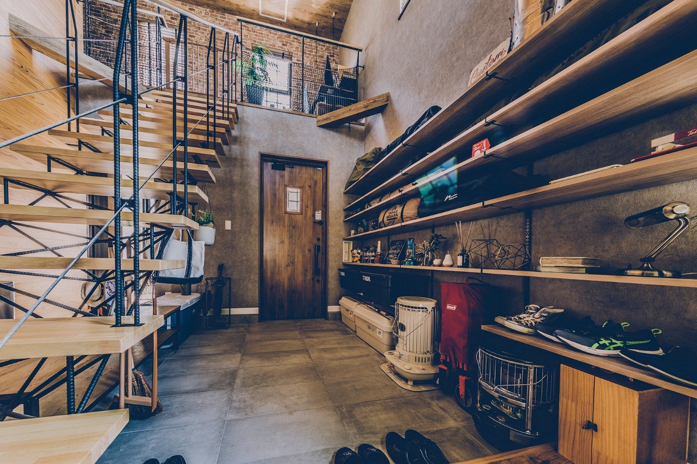 趣味を快適に楽しめる、広い土間・道具収納庫のあるモデルハウスを購入。