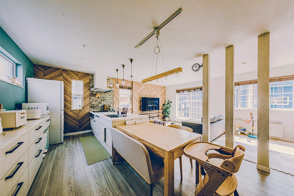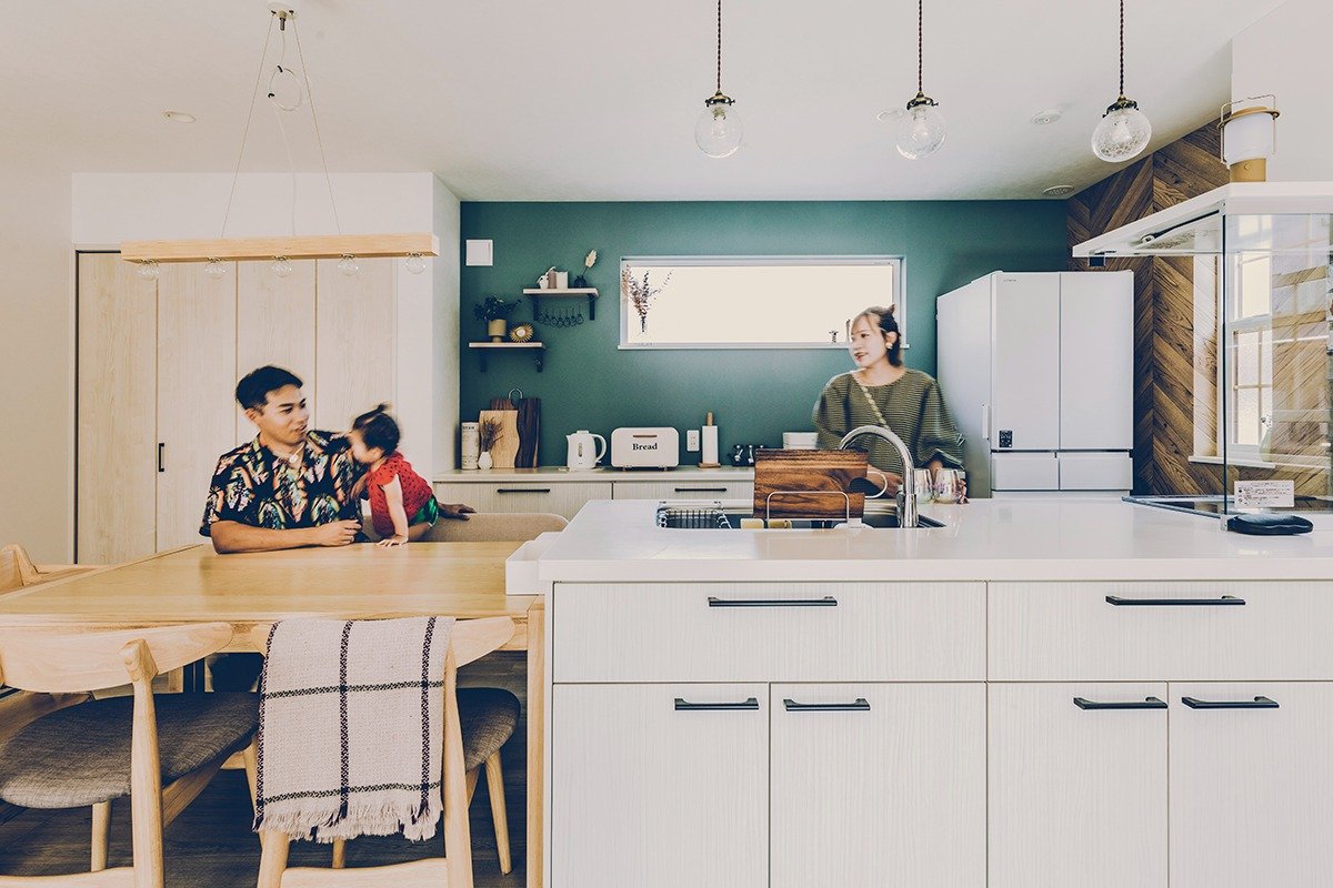 友だちが家を建て始め、自分たちも・・・と考えるようになりました。ここに引っ越す前は、すごく快適な妻の実家に2世帯で住んでいたのですが、いずれはマイホームが欲しいと思っていて。僕も妻も、新築一戸建ての一択。数撃ちゃ当たる精神で、とにかく色んな会社の家を見に行きました。ひと通り見た後で、Instagramを見て知った「アメカジ工務店も見てみない?」と妻に聞き、オープンハウス見学。サーファーズハウスのような家が理想だった僕と、妻の好みは違ったけど、何軒もアメカジの家を案内してもらう中で、ここなら2人の理想を上手に取り込んだ家が造れる、と確信しました。担当のスタッフさんが話しやすかったのも、好印象でしたね。当初はガレージを検討していて、費用やメンテナンスについてなど、かなり突っ込んだ質問をしたけど、真摯に対応してくれました。アメカジ工務店の家は、ガレージと土間を推しているけど、どっちも無くても、自分たちらしいカッコいい家は建つんだと実感。車をいじったり、サーフボードを手入れしたりするスペースとして、やっぱりガレージは男の憧れですけどね笑。